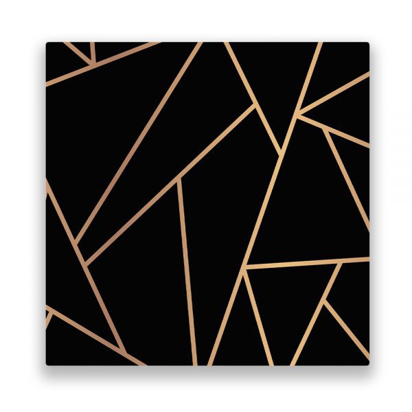 Nowoczesny ciemny obraz przedstawiający minimalistyczny wzór. Czerń ze złotem.