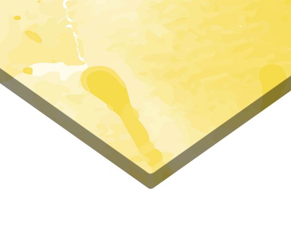 Nowoczesny obraz przedstawiający abstrakcyjne żółte, cytrynowe plamy.
