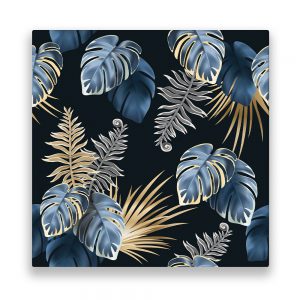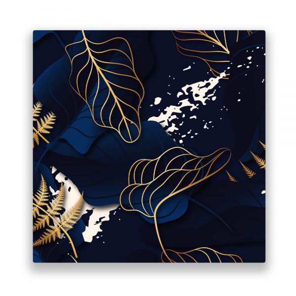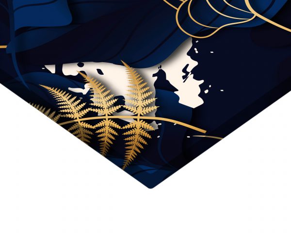 Nowoczesny obraz przedstawiający naturę w nowoczesny sposób. Połączenie złotych akcentów w stylu glamour z granatowymi barwami tła.